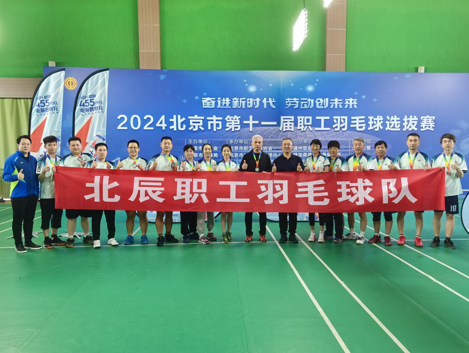 4月25日至27日,由北京市总工会、北京市体育局主办的2024北京市第十一届职工羽毛球选拔赛圆满举办。在本次全市113家单位970余名选手报名参赛的历届最大规模比赛中,北辰职工羽毛球队精神饱满、团结一致,顽强拼搏、出色发挥,团体赛和单项赛均创下佳绩,闪耀赛场。